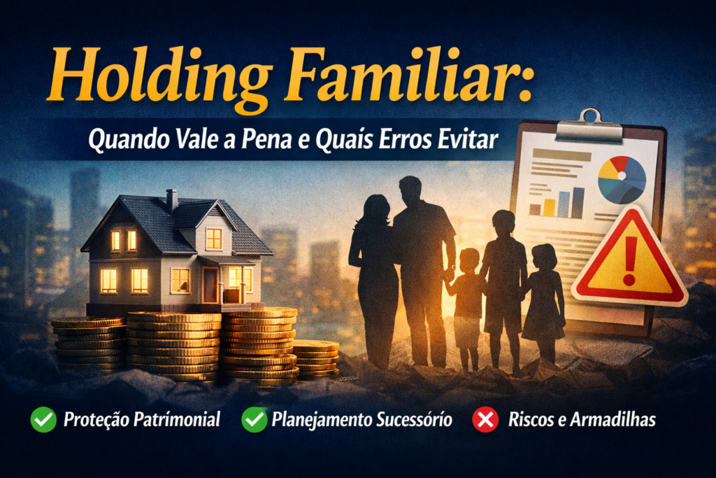 O que é uma holding familiar? A holding familiar é uma empresa criada para centralizar bens, participações societárias e patrimônio de uma família, com foco em organização, proteção patrimonial e planejamento sucessório. Ela não é “solução mágica” nem serve para todo mundo — e exatamente por isso gera tantos erros. Quando a holding realmente faz […]