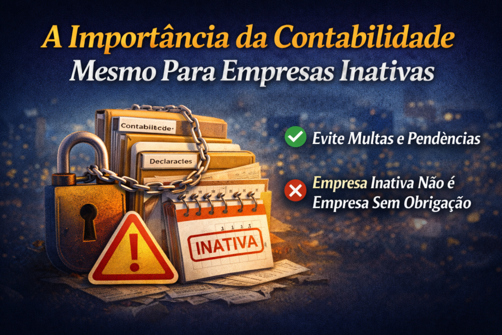 Empresa sem faturamento não é empresa sem obrigação Muitas empresas acreditam que, sem movimentação, não precisam de contabilidade — erro grave. Obrigações que continuam existindo Riscos de abandono Melhor caminho Conclusão Empresa inativa mal cuidada vira problema ativo. Manter regularidade custa menos do que regularizar depois.